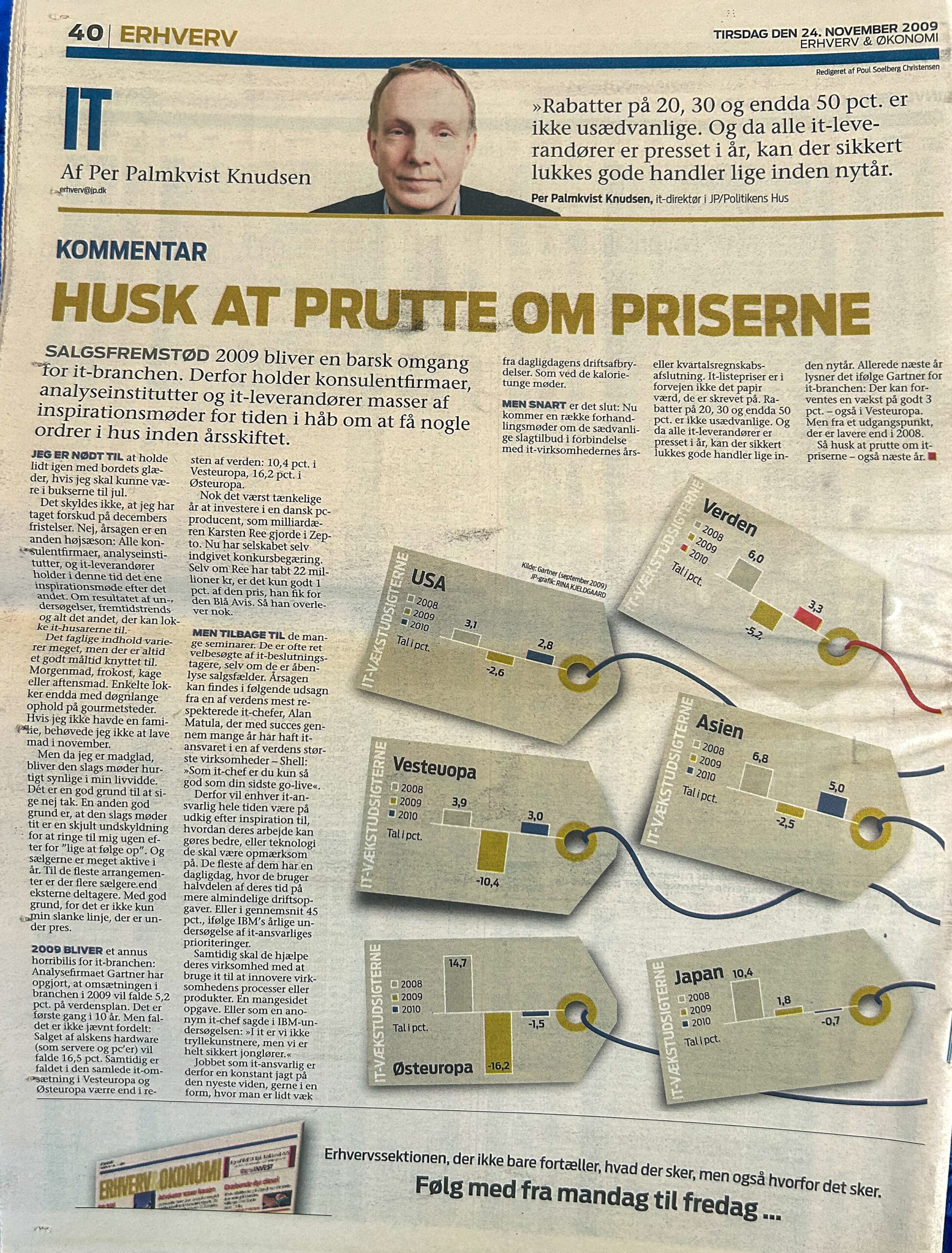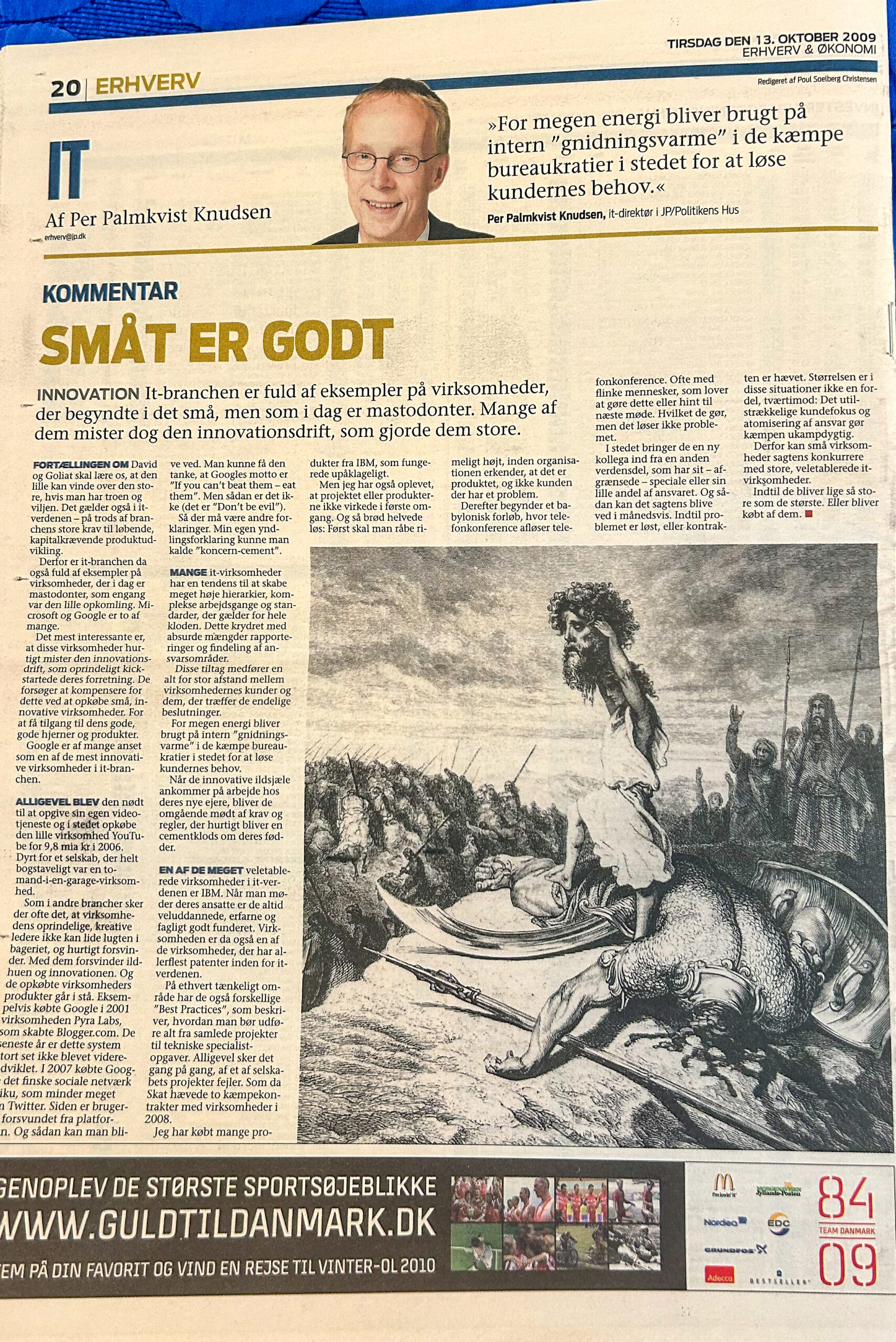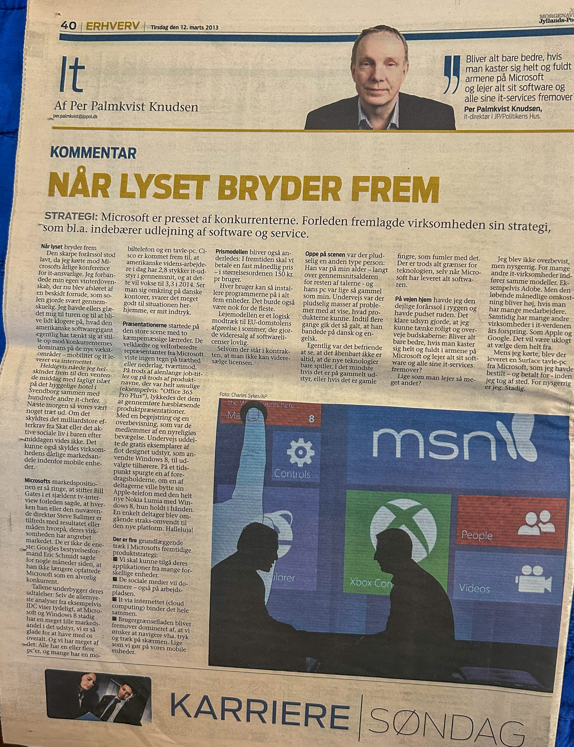 Lige fra jeg startede med at sende breve, har jeg været glad for at udtrykke mig på skrift. Siden har jeg kommunikeret på alt fra trykte magasiner til blogs. Da jeg kom til JP/Politikens Hus fik jeg lov til at skærpe mine evner i den retning. Defor skrev jeg hver uge – i otte år – en kommentar på bagsiden af Jylllands-Postens Erhvervstillæg.
