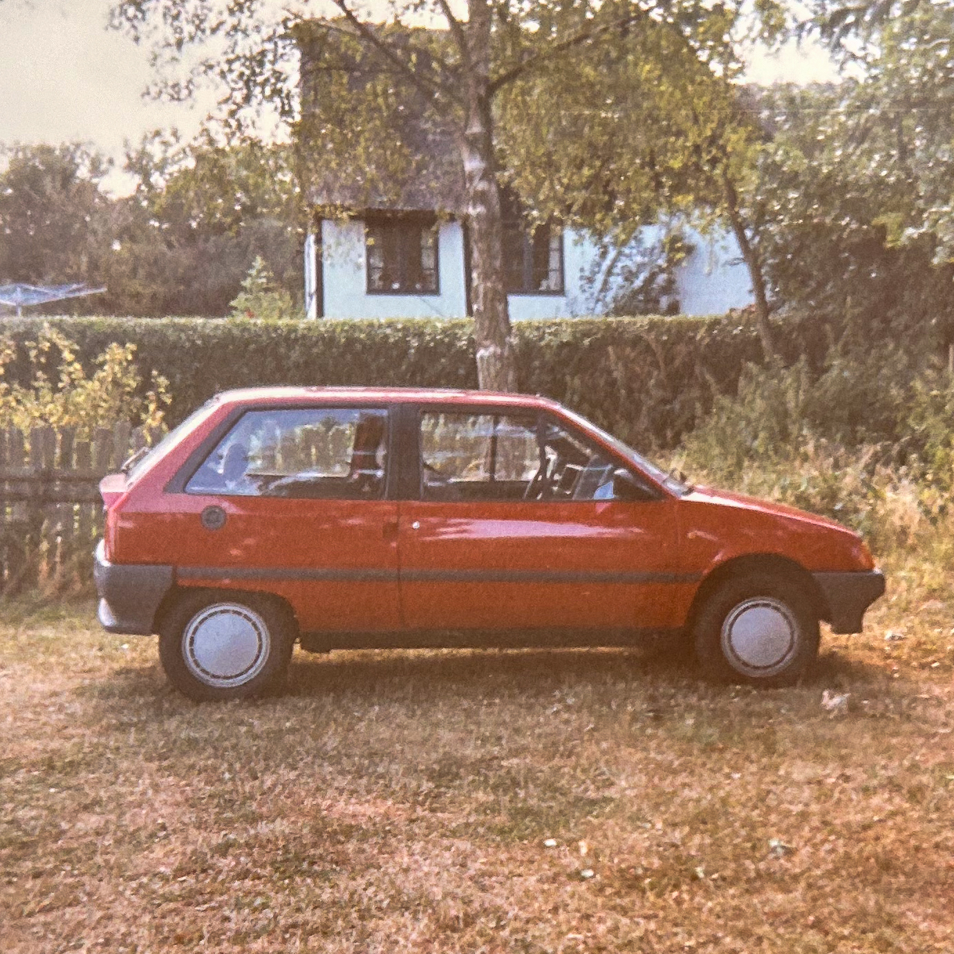 Alle i Fischer & Lorenz var glade for biler. Så det blev forventet, man kunne køre bil. Det kunne jeg ikke, men jeg fik et kørekort, lige inden jeg blev 30. Vivi og jeg anskaffede en knaldrød Citröen AX, som lige kunne rumme barnestol, bagage, barnevogn, og hvad der ellers var behov for. Men det var under alle omstændigheder meget mere bekvemt end bus og tog, som vi indtil da havde klaret os med.